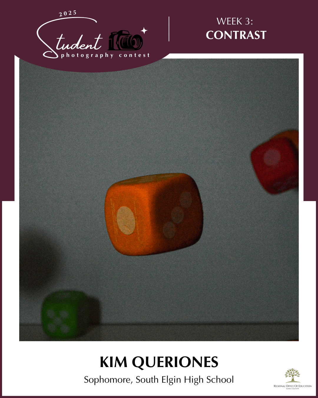 The Kane County Student Photography Contest is an annual competition hosted by the Kane County Regional Office of Education every fall. This event is designed to recognize and celebrate the talent within the art departments in our high schools as well as the knowledge and support handed down by instructors.